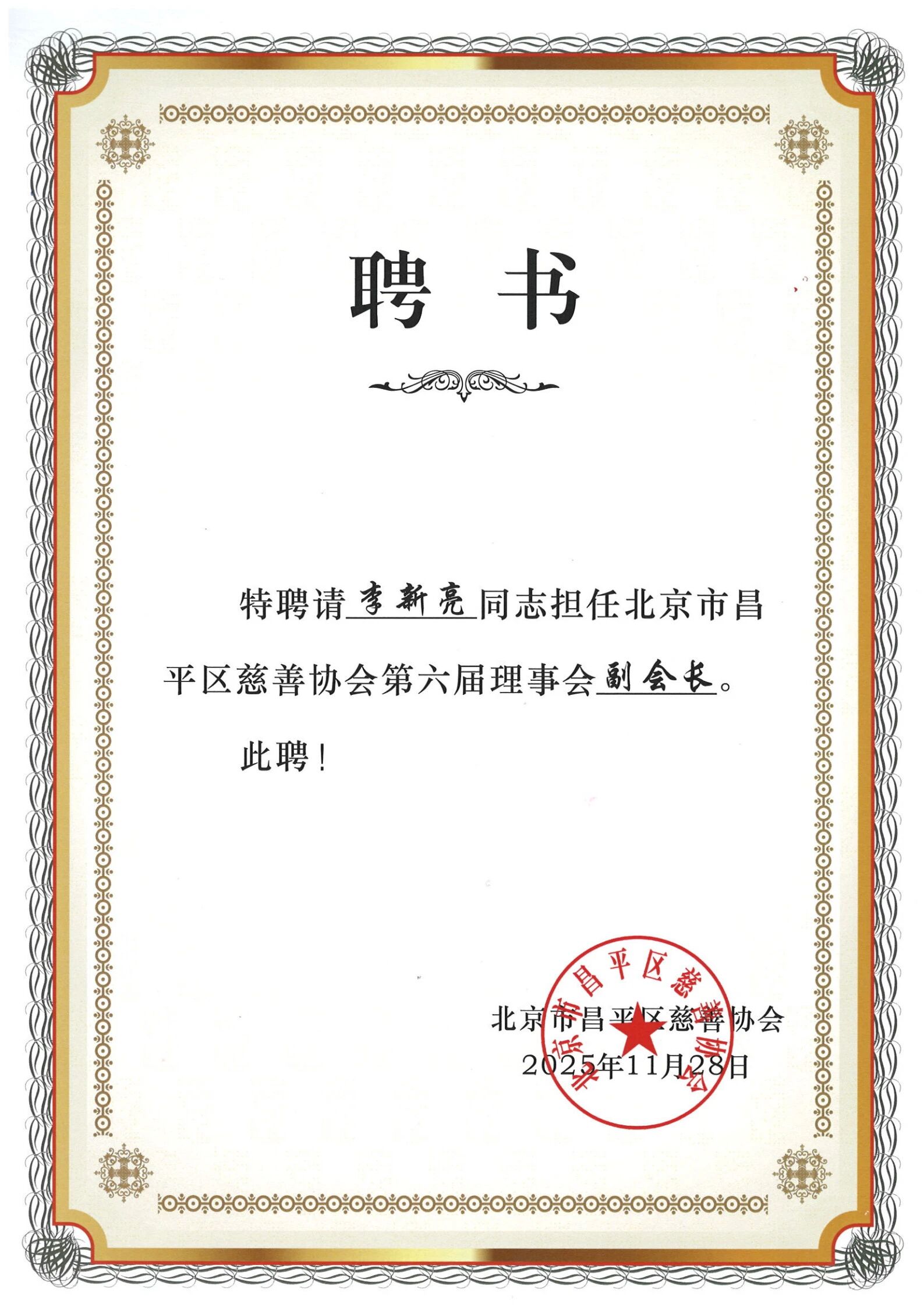 2025年11月28日,北京市昌平区慈善协会第六届会员大会暨六届一次理事会召开。